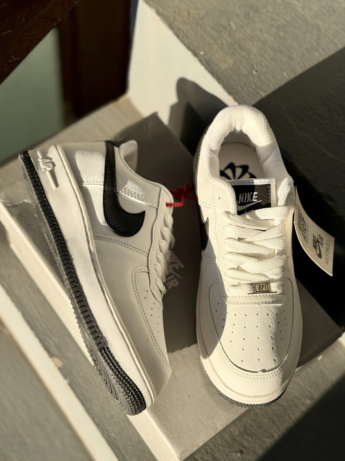Dale un upgrade a tu estilo con las infaltables Air Force 1 en blanco con detalles negros.