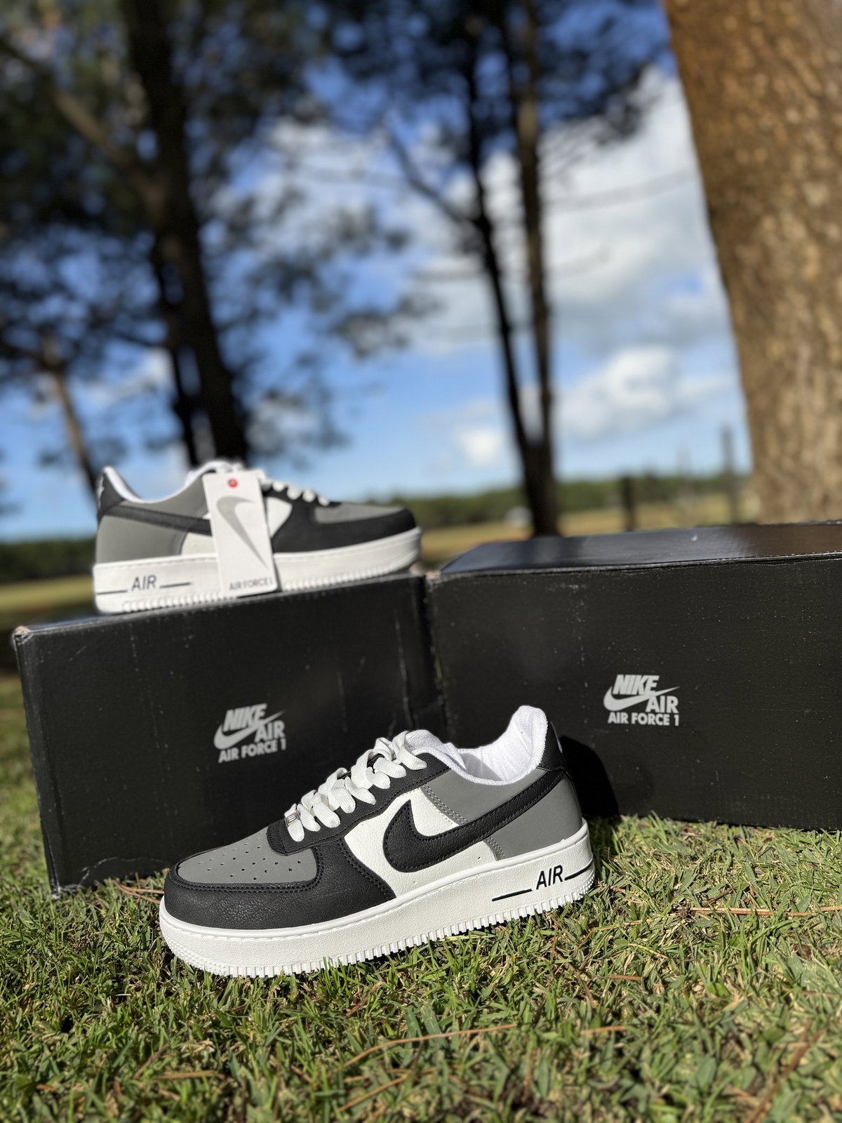 Dale un upgrade a tu estilo con este clásico reinventado. Los Nike Air Force 1 en tonos negro, gris y blanco combinan diseño urbano con máxima comodidad.