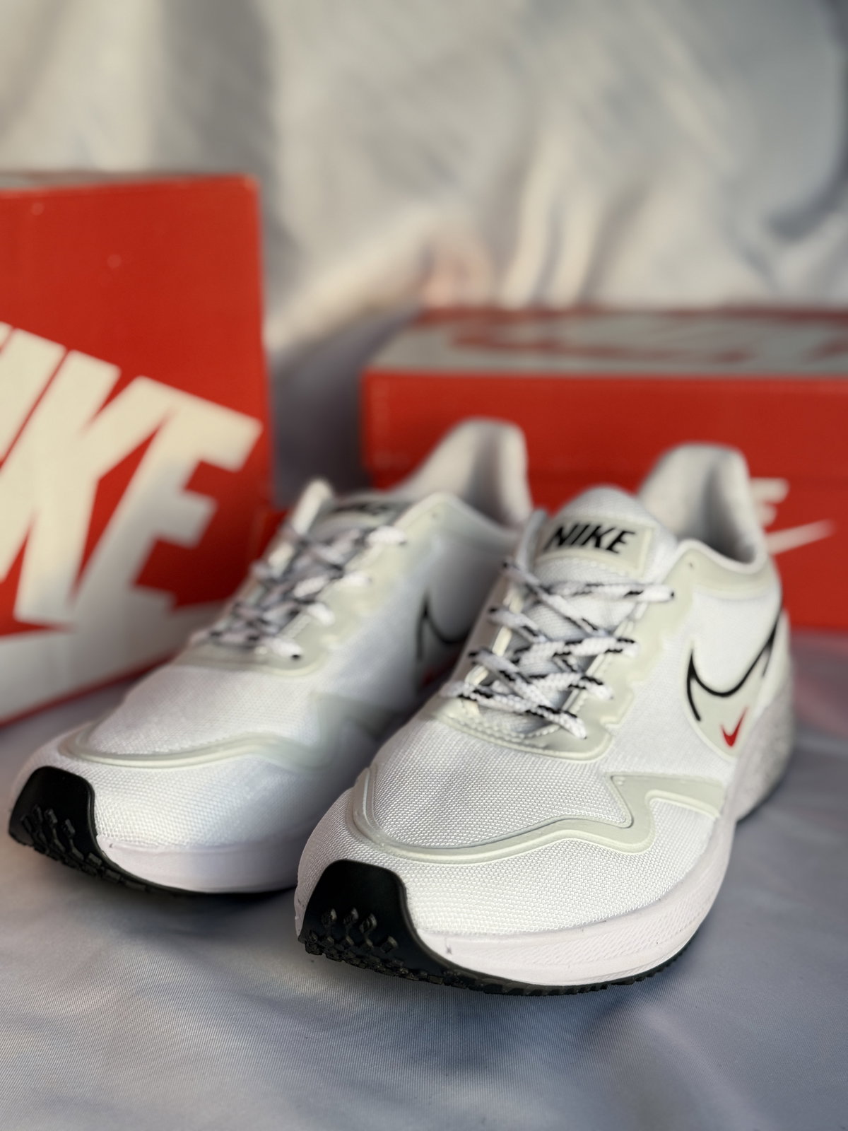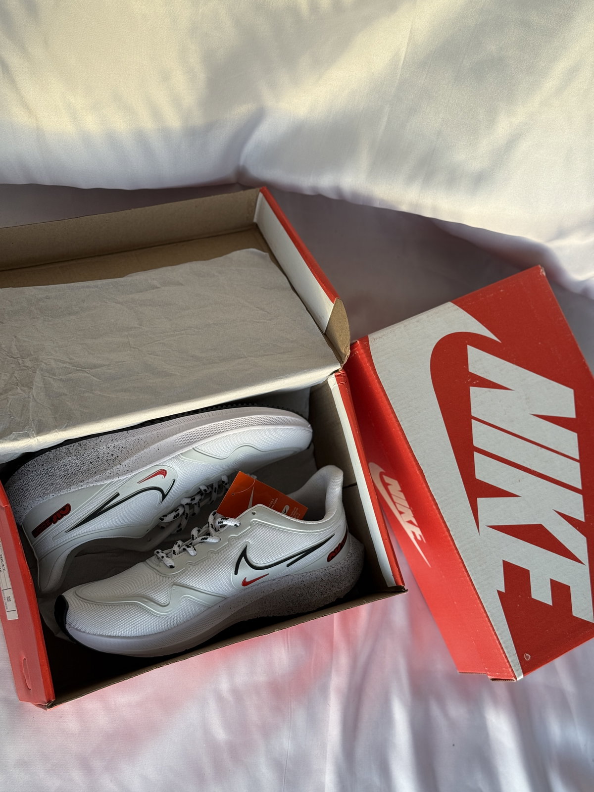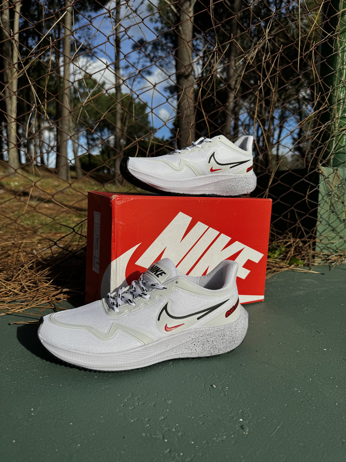 Explosión de energía y diseño. Las Nike Zoom llegan con un estilo dinámico y moderno, listas para acompañarte en cada paso. Confeccionadas en malla liviana para una mejor ventilación y una entresuela con tecnología Zoom que ofrece máxima amortiguación y respuesta. Su diseño en blanco con detalles en negro y rojo no solo transmite velocidad, también eleva tu look urbano o deportivo con un toque futurista. Ideales para entrenar, caminar o destacar en la calle.